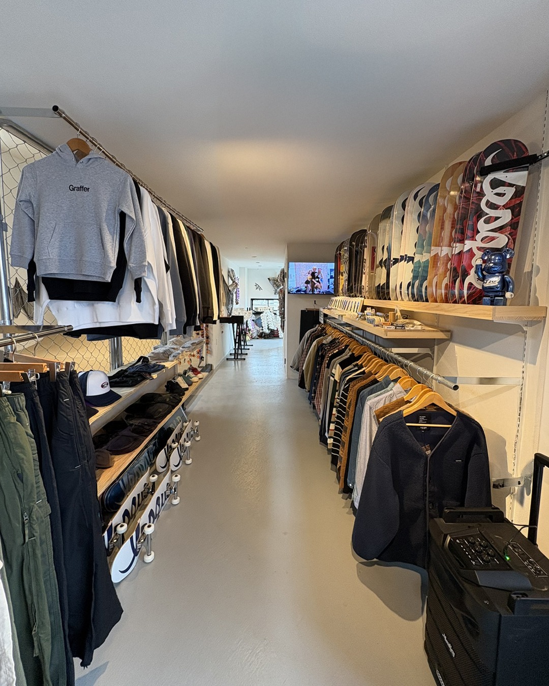 これまで「スケートパークのある場所」という印象が強かったGrafferですが、実は店内でアパレルの販売も行っています👕