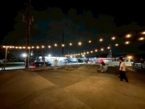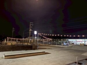 ライトに照らされたパークで話したり、写真を撮ったり、ゆっくり音楽を聴いたり。