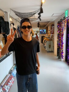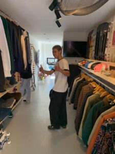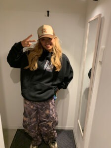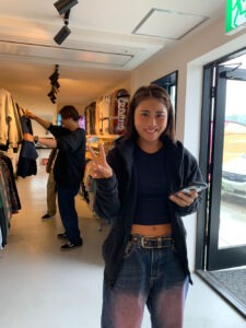 この日は、スケート練習中の真剣な表情から、ショップ前でリラックスする笑顔まで、
